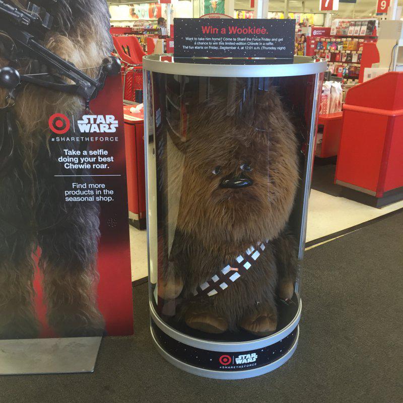 In addition to giveaways for all late-night guests (while supplies last), each store participating in the midnight openings will be giving away a 4-foot Chewbacca doll to one lucky customer! The 4-foot tall Chewbacca is valued at a whopping $199.